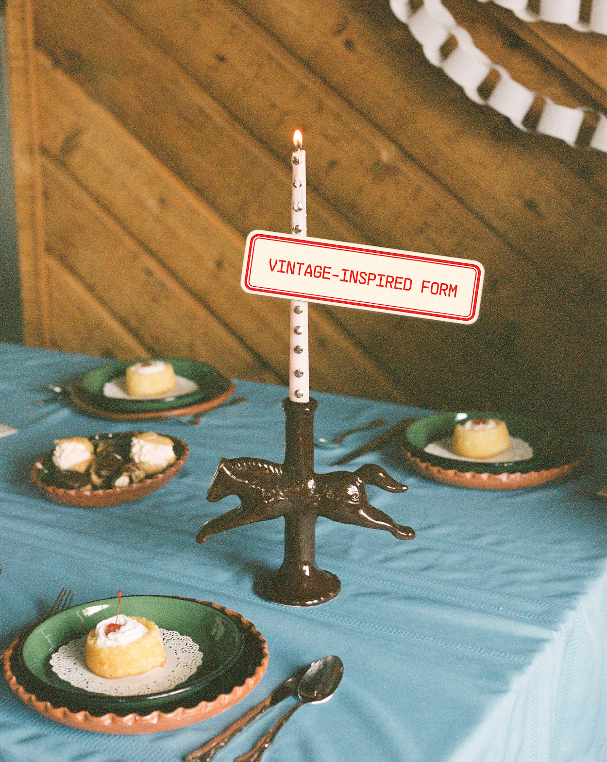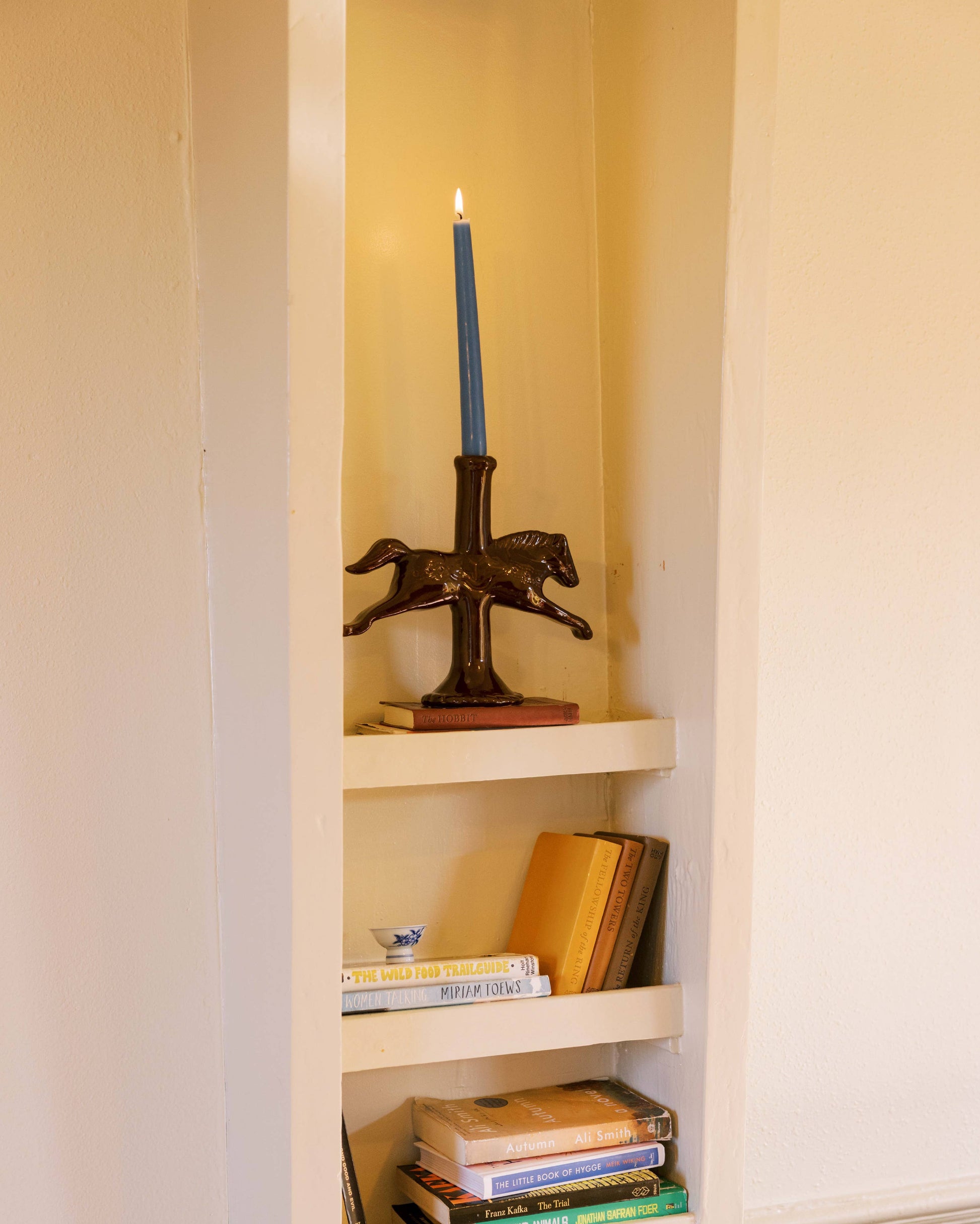 Meet the Dala Horse Candlestick Holder made by St Bingo, a sculptural ceramic candle stand inspired by Swedish folk art. Every piece is glazed by hand, giving it soft, organic texture and gentle variation in color. No two pieces are exactly alike, each candle holder has its own subtle personality, small marks, glaze variation, and charm are part of the handmade process.