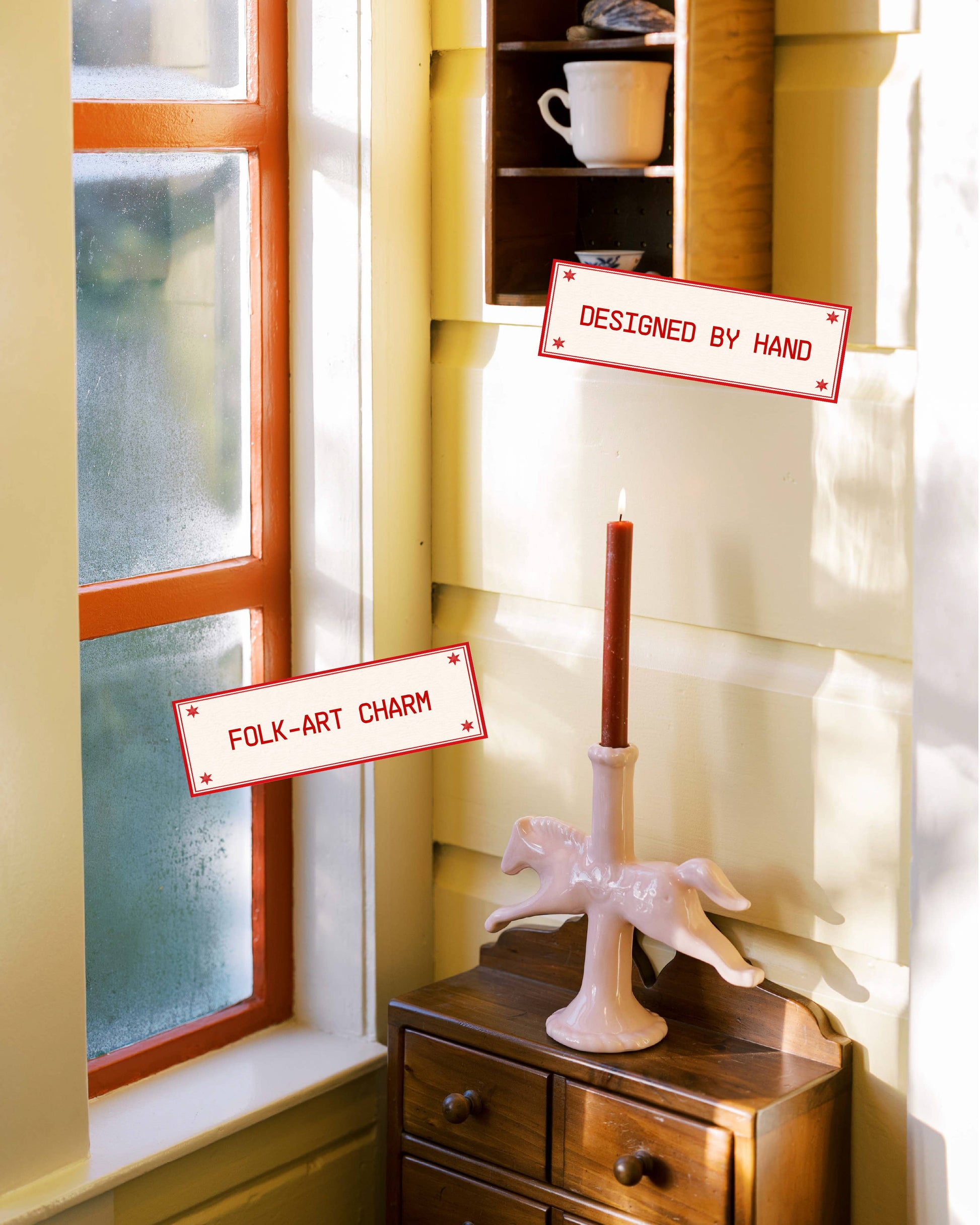 Meet the Dala Horse Candlestick Holder made by St Bingo, a sculptural ceramic candle stand inspired by Swedish folk art. Every piece is glazed by hand, giving it soft, organic texture and gentle variation in color. No two pieces are exactly alike, each candle holder has its own subtle personality, small marks, glaze variation, and charm are part of the handmade process.